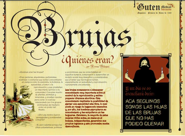Periódico basado en la imprenta De Gutenberg con información sobre la situación de la mujer en la Edad Media y los inicios del feminismo.